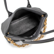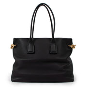 This stylish Bottega Veneta tote is beautifully crafted of black fine calfskin leather. The shoulder bag features dual rolled handles, long enough to carry on your shoulder. The top opens to a spacious leather interior with a zipper and patch pockets.
