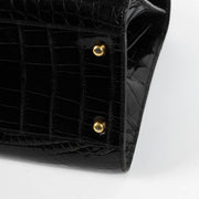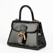An icon of quiet luxury, the Delvaux Brillant PM in black crocodile-embossed leather embodies the maison’s legacy of refined craftsmanship and timeless design. Sculpted with architectural precision, this coveted silhouette is elevated by its lustrous gold-tone “D” buckle closure—an instantly recognizable signature that lends both structure and elegance.