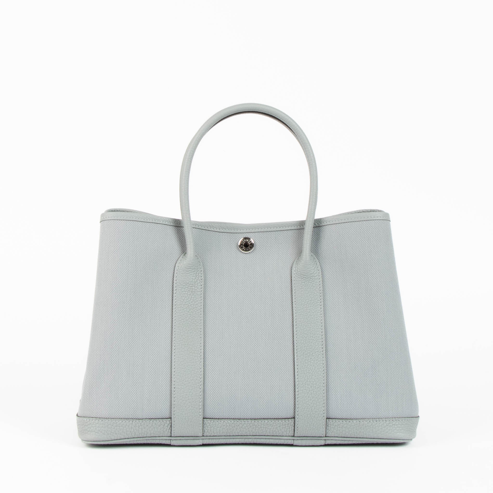 Hermès’ Garden Party 30 is a timeless and practical piece that reflects the brand’s understated elegance. Crafted from a combination of canvas and leather in the refined Gris Pantin shade, it is complemented by silver hardware for a clean and polished finish. The structured tote silhouette features dual sturdy top handles and snap button side closures, offering both durability and versatility. The spacious interior provides ample room for daily essentials, making it ideal for everyday use. A classic and effortless design that blends functionality with refined style.