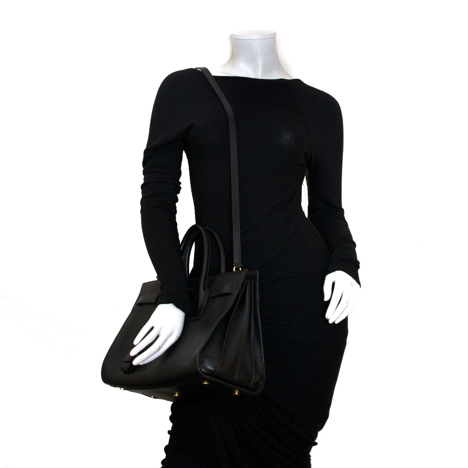 This Saint Laurent 'Sac De Jour' Tote is crafted from luxurious black leather, discreetly stamped and adorned with a weighty padlock. The suede-lined interior boasts a wealth of zipped compartments to ensure your essentials are stored safely. The bag has a detachable strap which allows you to wear the bag on your shoulder, as well as in your hand.