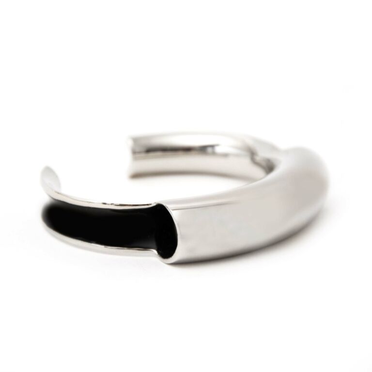 This elegant cuff by Balenciaga features black and silver tones, and can easily be worn on the wrist.