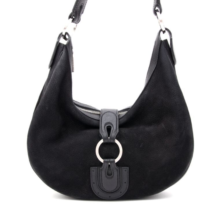 Delvaux Camille PM Hobo Shoulder Black Nubuck Bag