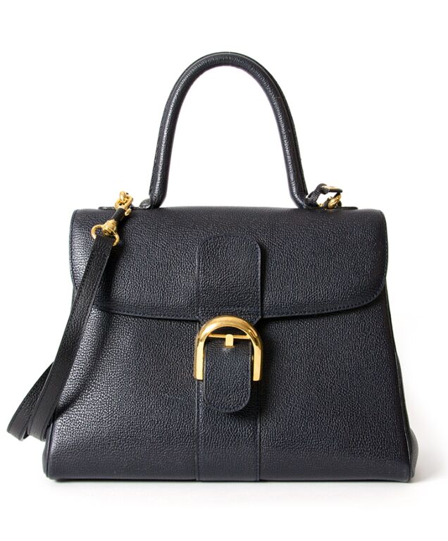 Timeless Delvaux Brillant MM gold hardware in a gorgeous Dark Blue leather material.