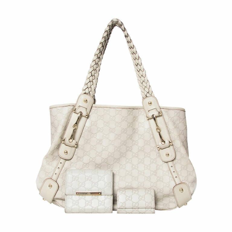 Gucci Ecru Monogram Bag with Matching Wallet and Keyholder